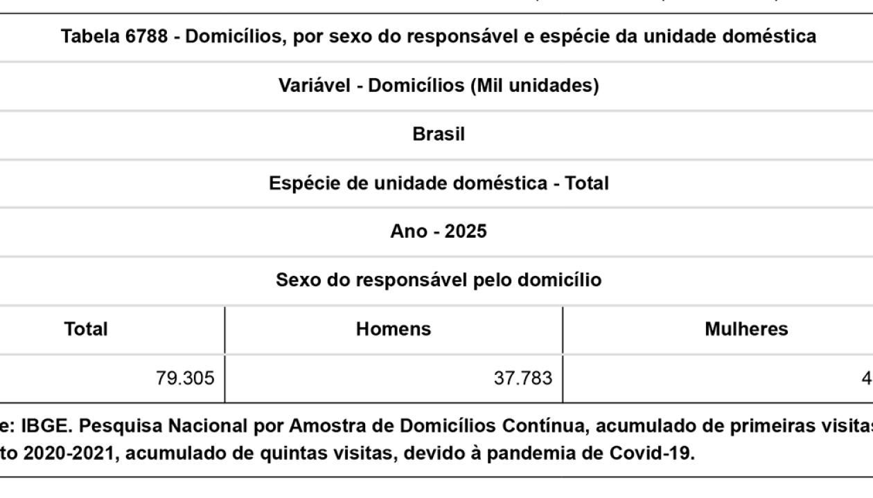 Também cresceu o percentual de pessoas que vivem sozinhas. Em 2025, os domicílios unipessoais chegaram a 19,7% (15.633). Em 2012, o percentual era de 12,2%. O arranjo nuclear – quando há pelo menos um casal, mãe com filhos ou pai com filhos – ainda é o predominante: 65,6% dos domicílios. Mas caiu em relação a 2012, quando chegava a 68,4%.