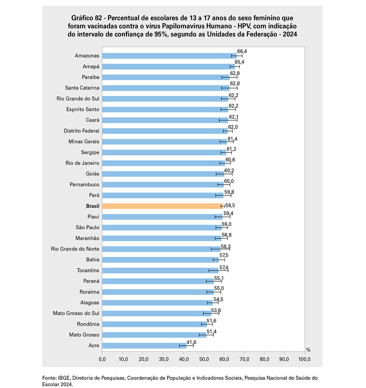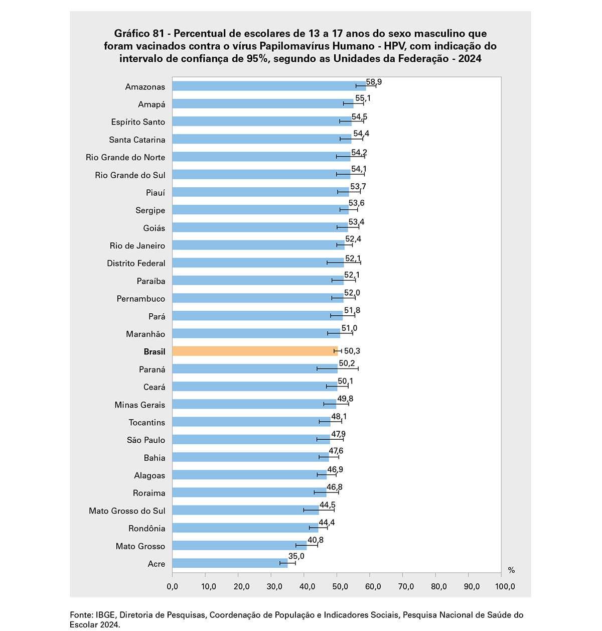 De acordo com o Ministério da Saúde, dados preliminares das vacinas aplicadas em 2025 mostram uma cobertura maior do que a verificada na pesquisa, de 86% entre meninas e 74,4% entre meninos. Desde 2024, a vacina contra o HPV é aplicada em dose única.