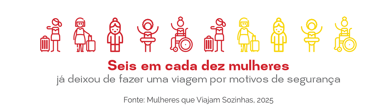 Os dados mostram que 62,1% das mulheres já deixaram de viajar sozinhas por questões de segurança, enquanto 60,6% afirmam já ter vivido alguma situação que as fez se sentir inseguras durante uma viagem solo.
