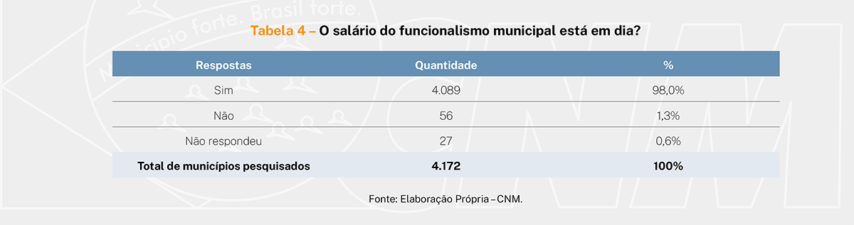 O levantamento alcançou 4.172 municípios (74,9% dos 5.569) e teve como objetivo diagnosticar a situação fiscal das prefeituras, sobretudo no que se refere ao cumprimento do pagamento da Gratificação Natalina (13º salário).