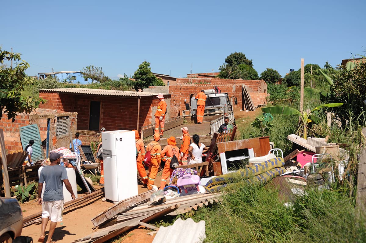 Das cinco favelas que mais expandiram sua área de ocupação entre 1985 e 2024, quatro delas estão na capital federal, como ocorre no Sol Nascente, em Brasília, onde casas são retiradas de área de risco (Dênio Simões/Agência Brasília)25% da expansão urbana brasileira ocorreu em áreas de segurança hídrica crítica