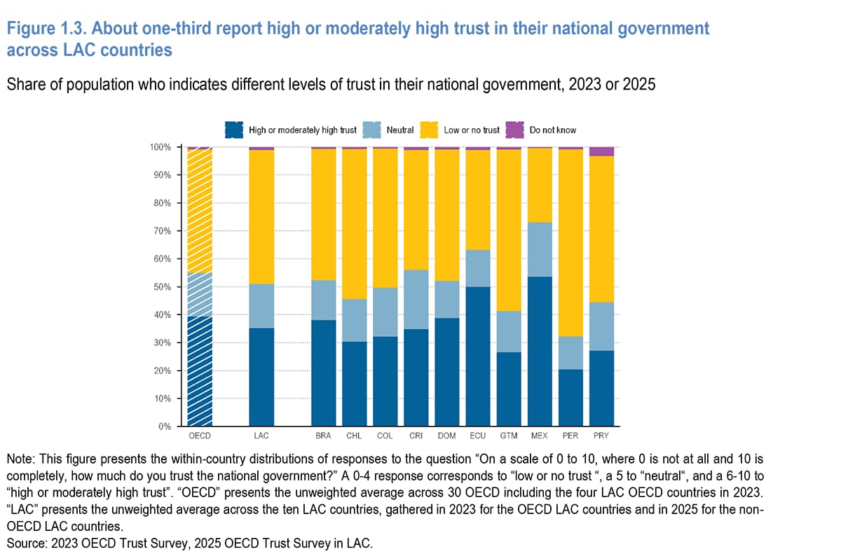 Fonte: OECD Survey on Drivers of Trust in Public Institutions in Latin America and the CaribbeanMensuração da confiança