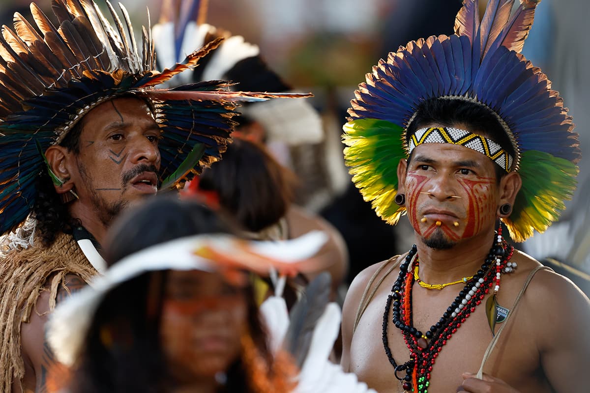 Indígenas do povo Tupinambá de Olivença, na Bahia, participam da celebração do retorno do Manto Tupinambá ao Brasil, na Quinta da Boa Vista, onde fica o Museu Nacional, no Rio de Janeiro (Fernando Frazão/ABr)As portarias incluem a demarcação dos seguintes territórios: