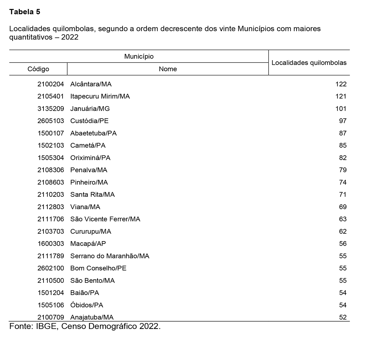 Fonte: Censo Demográfico 2022: localidades quilombolasTerras de Preto