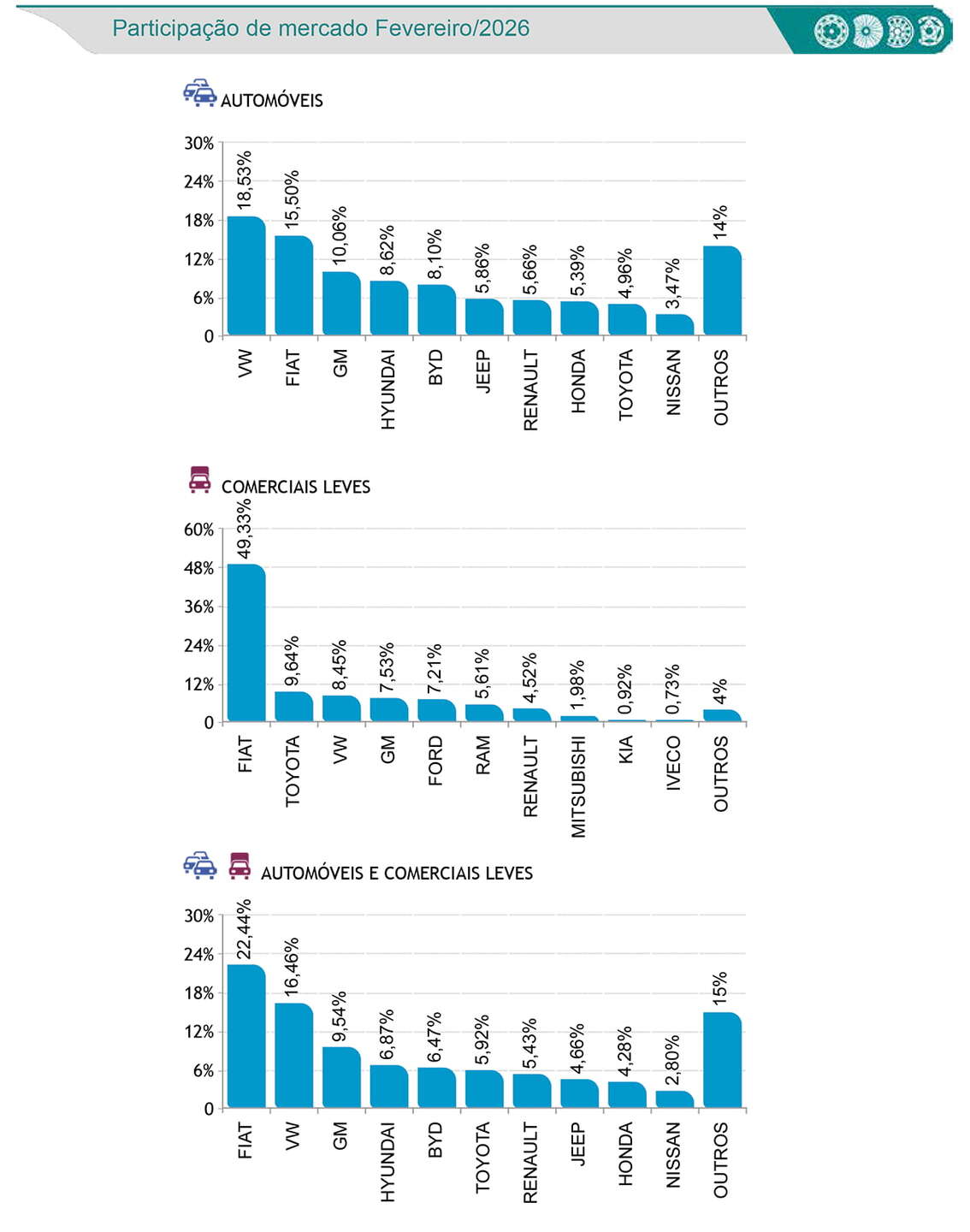 Segundo a federação, a alta se deve principalmente aos emplacamentos de automóveis e comerciais leves, que cresceram 8,82% no mês, além de implementos rodoviários, com aumento de 15,3% na comparação com janeiro.