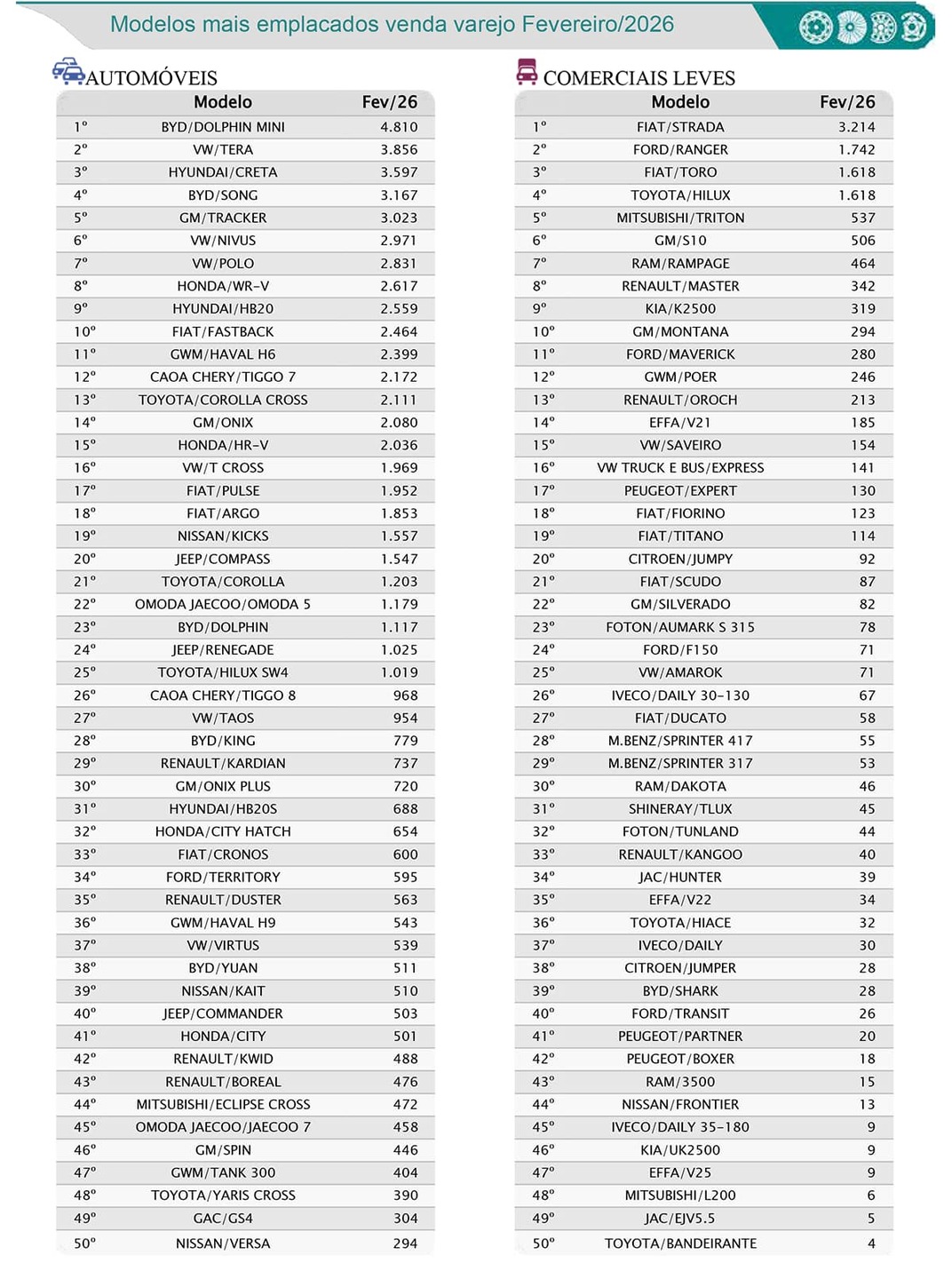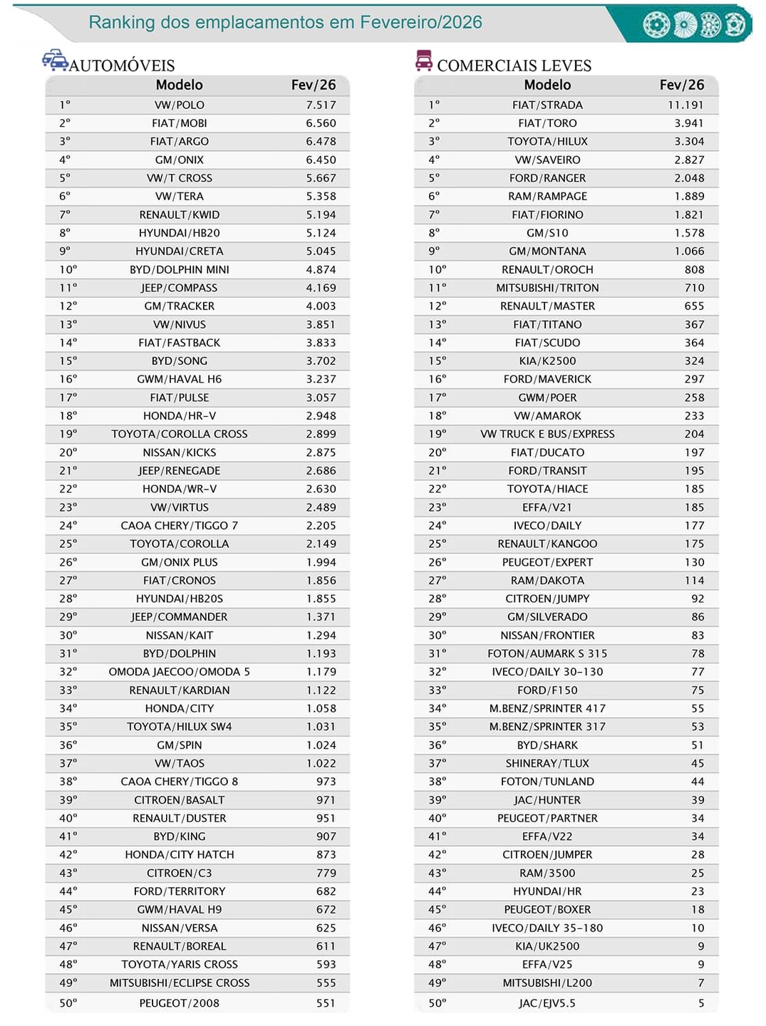 De acordo com a Fenabrave, os modelos que fazem parte do programa somaram 301.977 emplacamentos entre julho de 2025 e fevereiro deste ano, contra 241.906 unidades do mesmo tipo emplacadas em período igualmente anterior, quando não havia o programa.