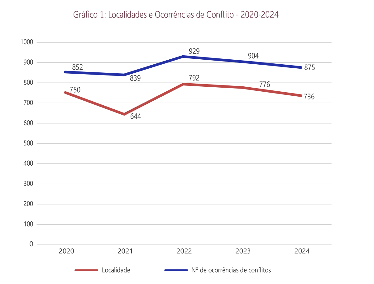 Segundo o relatório, foram identificadas 875 ocorrências de conflito distribuídas em 736 localidades, em todos os estados brasileiros, com exceção do Distrito Federal, envolvendo 1.057.950 pessoas.