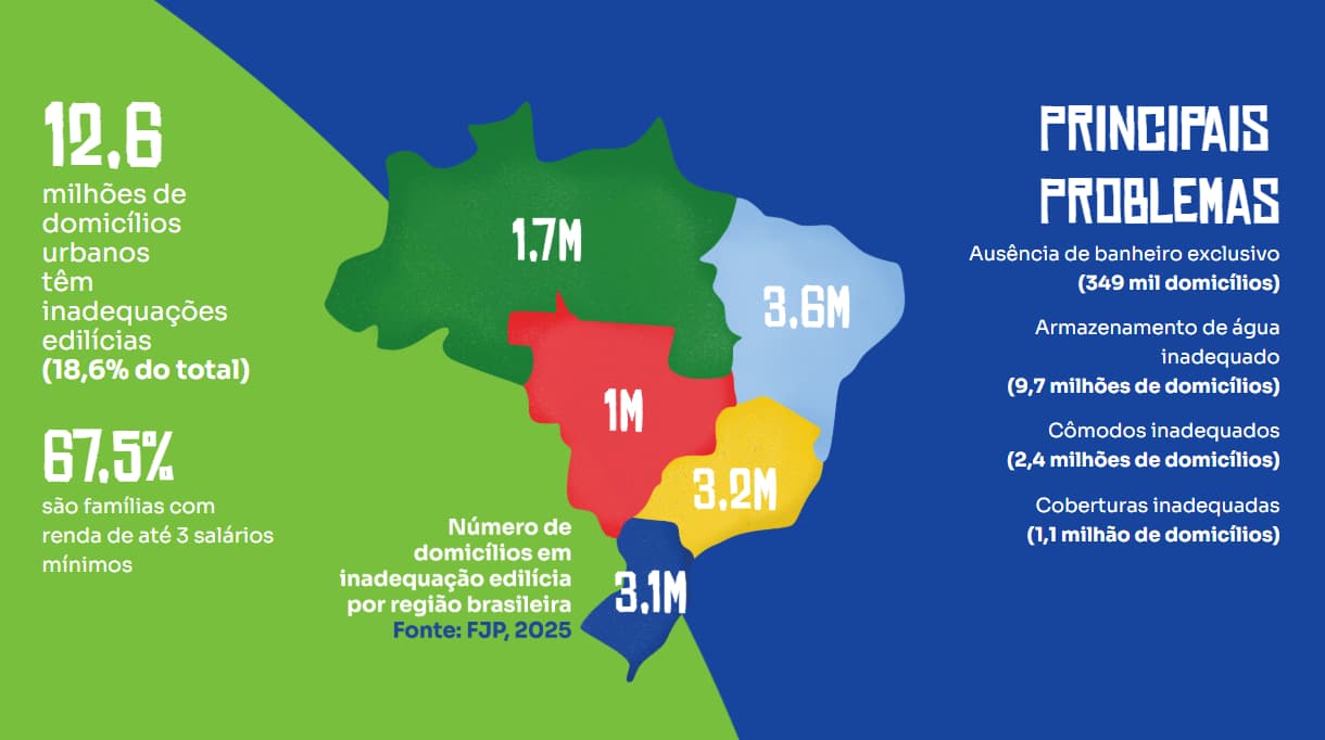 O Ministério das Cidades acaba de lançar o ‘Periferia Viva – Reformas’, com foco na construção ou melhorias de banheiros. Nesta seleção, serão R$ 300 milhões destinados para reformas e melhorias de 9 mil casas que apresentam ausência ou inadequação de banheiro, em todos os estados do país, em municípios acima de 50 mil habitantes ou integrantes de arranjos populacionais acima de 300 mil habitantes e que tenham mais de 20 domicílios com inadequação sanitária.
