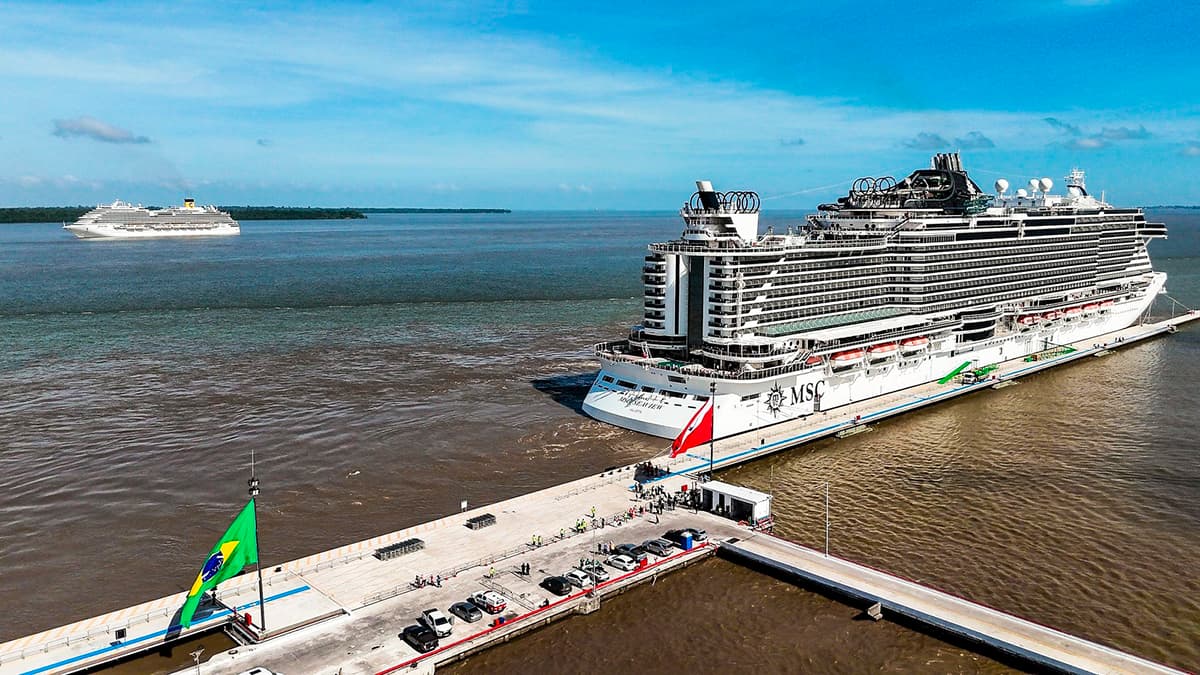 Os navios MSC Seaview e Costa Diadema, atracados no Porto de Outeiro, em Belém, oferecerão, juntos, 6 mil leitos, como estratégia do governo federal para aumentar a oferta de hospedagem durante a COP30 (Gabriel Della Giustina/COP30)Como funciona a COP?