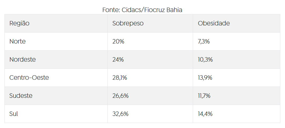 Os dados constam na pesquisa ‘Sobrepeso, obesidade e atraso no crescimento entre crianças de baixa renda no Brasil’, publicada pela Jama Network (Vol. 9, nº 1), plataforma da American Medical Association (AMA) que reúne 12 revistas médicas internacionais.