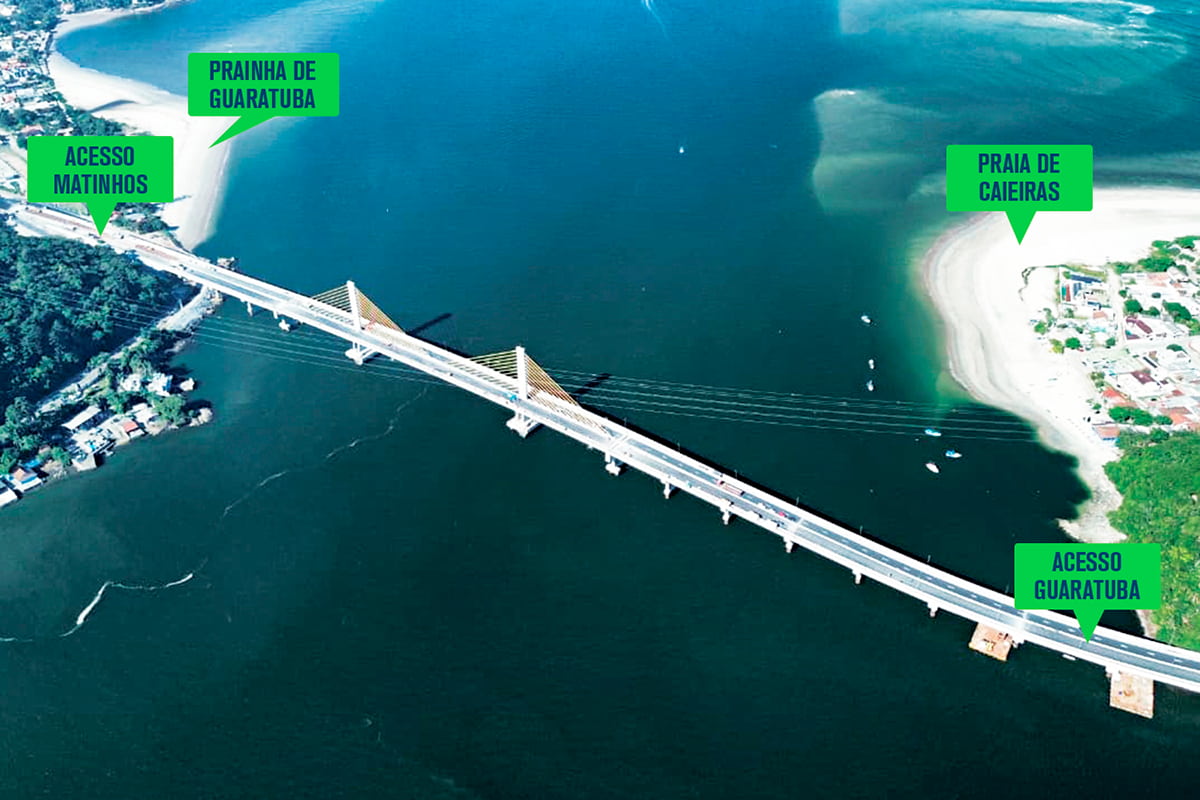 Após mais de 40 anos de espera, a Ponte de Guaratuba será inaugurada pelo Governo do Paraná. As obras foram iniciadas em abril de 2024, ao custo de 386,9 milhões, e colocam fim à travessia pelo ‘ferry boat’ entre os municípios de Matinhos e Guaratuba.