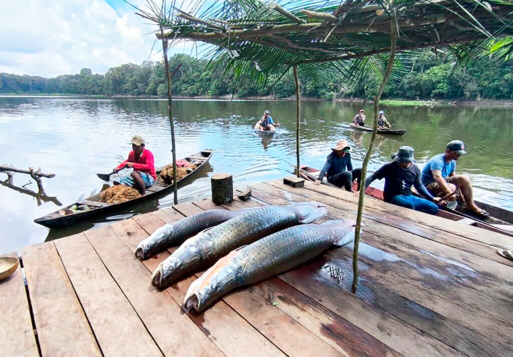 Segundo a Lei 14.119/2021, serviços ambientais são atividades individuais ou coletivas que favorecem a manutenção, a recuperação ou a melhoria dos serviços ecossistêmicos. No caso do PSA Pirarucu, os serviços ecossistêmicos apoiados são a conservação da biodiversidade, a manutenção da identidade social e cultural das comunidades que realizam o manejo e a manutenção e recuperação das populações naturais de pirarucu, a regulação ecológica dos ecossistemas de várzea e a provisão de alimento.