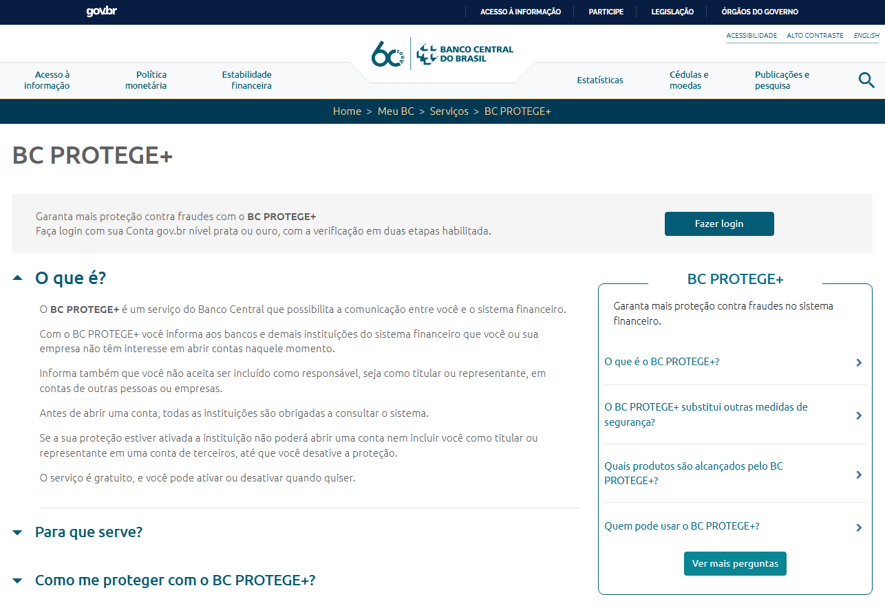 O BC Protege+ estará disponível no site do BC, dentro da área logada do Meu BC no site do Banco Central, seguindo: “Serviços > Cidadão > Meu BC”. Dentro do sistema, é possível ativar ou desativar a proteção a qualquer momento.