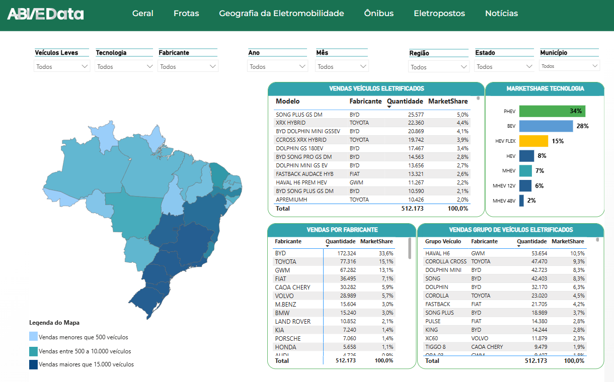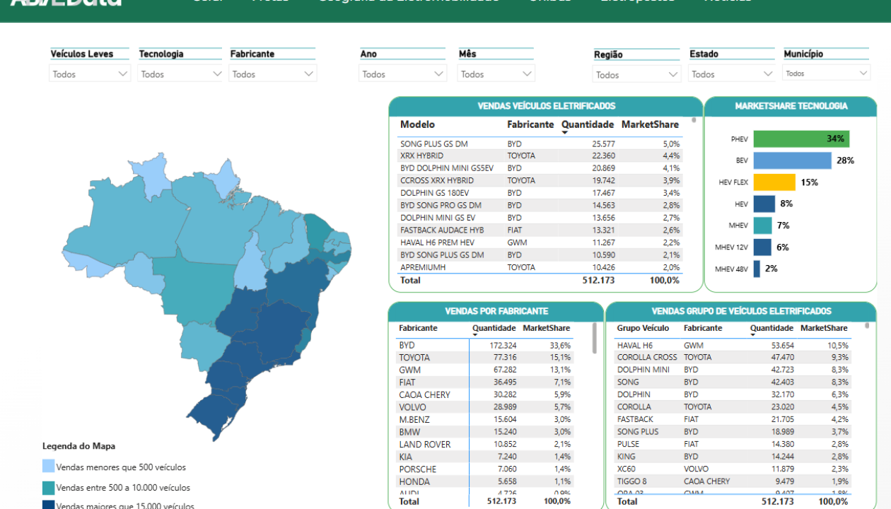 “A eletromobilidade no Brasil vem se consolidando como um processo contínuo e em expansão. A adoção, pelos consumidores, de tecnologias menos poluentes reflete-se no aumento da participação dos eletrificados no mercado e nos investimentos realizados pelas montadoras para produzir esses modelos no Brasil”, destaca a associação.
