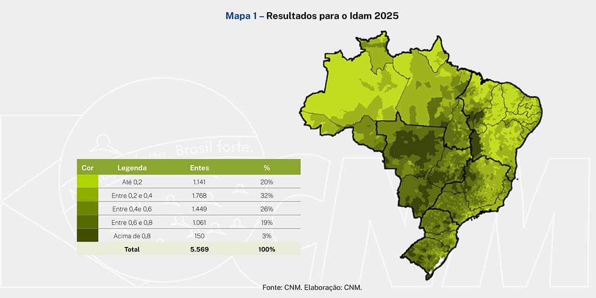 A Confederação Nacional de Municípios (CNM) monitora, desde 2022, o Índice de Desenvolvimento da Agropecuária Municipal (Idam) das 5.569 cidades brasileiras. O indicador é baseado em quatro dimensões: produção e produtividade, geração de emprego formal, captação de crédito agrícola e pecuário, e a arrecadação do Imposto Territorial Rural (ITR).
