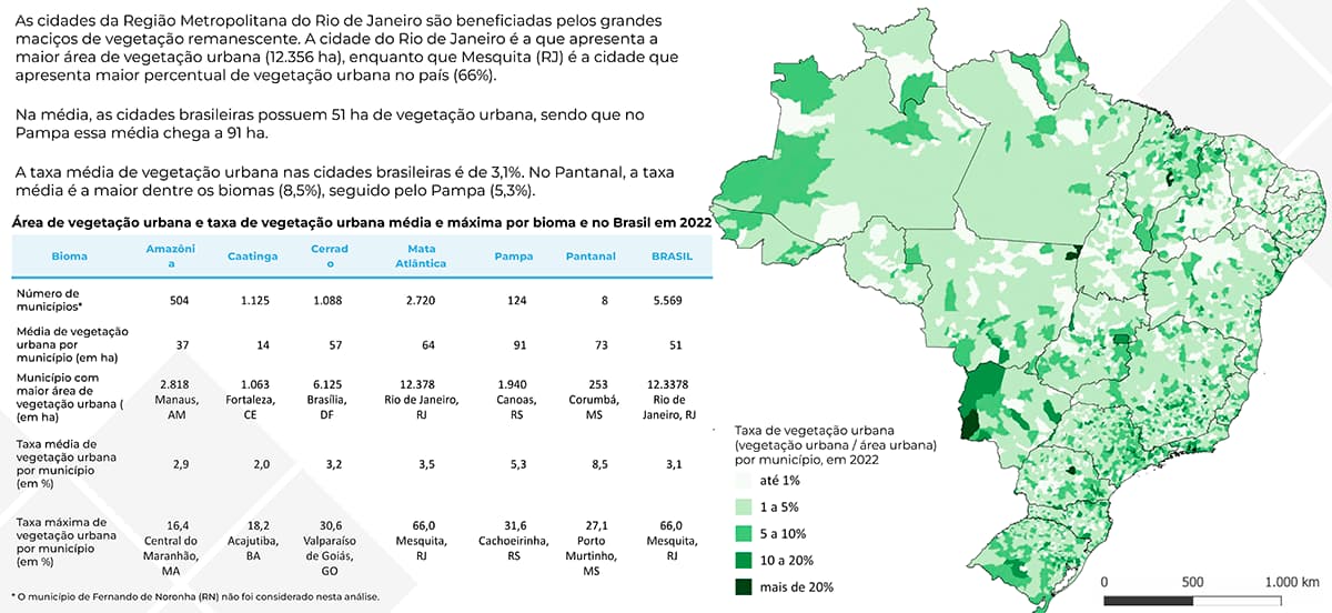 Um levantamento feito por satélite pela rede de instituições de pesquisa ambiental MapBiomas mostra o descaso com a arborização das cidades. Da área urbana total do país, revela o estudo, somente 6,9% são cobertos por vegetação.