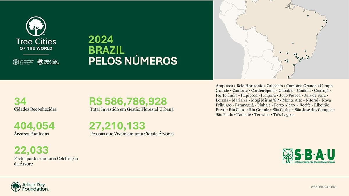A honraria, concedida anualmente pela Arbor Day Foundation, dos Estados Unidos, e pela Organização das Nações Unidas para Agricultura e Alimentação (FAO), considera critérios como a quantidade e a qualidade das árvores, a existência de uma secretaria municipal dedicada ao meio ambiente e o volume de recursos destinados à arborização.
