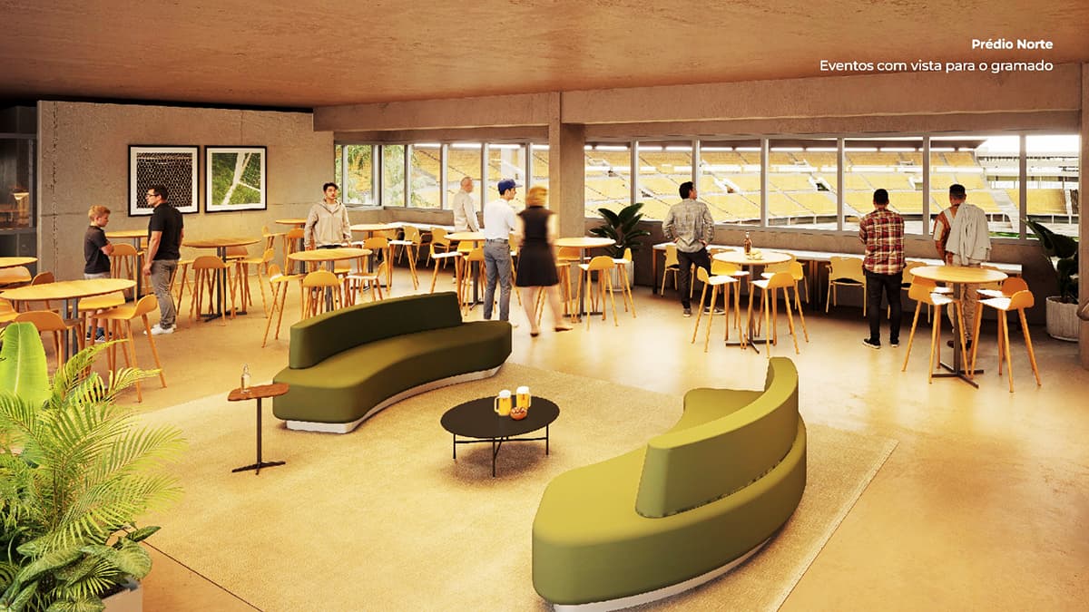 O projeto de revitalização preserva a arquitetura original do estádio, mas estão previstos o rebaixamento do gramado e a capacidade será readequada, passando para 44 mil torcedores em jogos e 60 mil pessoas em shows (Construcap)Bola pra frente...