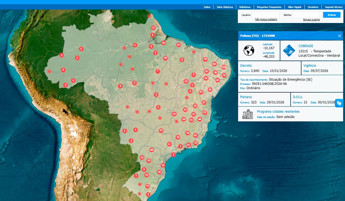 Esse volume de decretos explica-se pelo fato de um município poder ser afetado por desastres por mais de uma vez ao longo do ano. O levantamento revela ainda um crescimento de 50% em comparação ao verão passado, que saltou de 722 decretos no verão passado para 1.084 decretos registrados neste verão de 2025/2026.